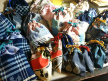 写真はさっきできあがった巾着たちです。